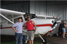 Jason Macken Private Pilot, 08/26/10 Pictured on the right, Jason is the proud owner of a mint-condition 1950 Cessna 170, and now a Private Pilot Certificate! Both Patrick (left) and the flight examiner agree that Jason is one of the best stick and rudder pilots out there! |